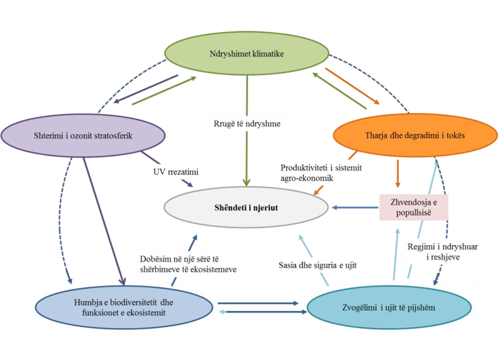 Në nivel global, aktivitetet njerëzore kanë shkaktuar dhe do të vazhdojnë të shkaktojnë humbje në biodiversitet, mes tjerash, përmes ndryshimit të mënyrës së përdorimit të tokës dhe ndryshimit të mbulesës së tokës; ndotjes dhe degradimit të tokës dhe ujit (përfshirë shkretëtirëzimin) dhe ndotjes së ajrit; uji në ekosisteme dhe sistemet urbane të menaxhuara në mënyrë intensive; fragmentimi i habitateve; shfrytëzimi selektiv i specieve; paraqitja e specieve jo vendore dhe pakësimi i ozonit në stratosferë.