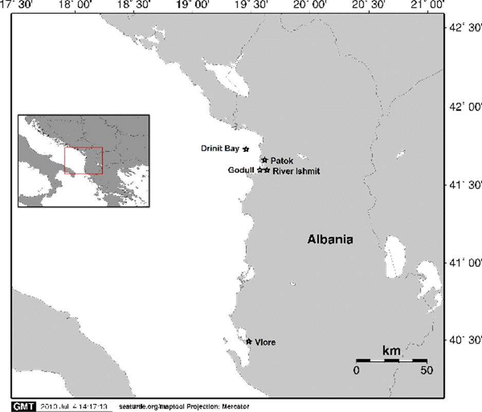- Përgjatë verës së vitit 2008 dhe 2009 u matën dhe identifikuan mbi 245 breshka të llojit Carreta carreta duke siguruar prova që kjo është një ndër zonat kryesore ku breshkat e ujit kërkojnë ushqimin. Ato u kategorizuan sipas madhësisë së zhguallit të tyre të lakuar (CCL), të ndarë në grupime me diferencë 10 cm. Pas matjes së 211 breshkave u arrit në konkluzionin se mesatarja e përmasave të kësaj lloji breshke ishte 64 cm dhe Devijimi Standard (SD) ishte 8.6 cm. Krahas breshkave të llojit Carreta carreta u identifikua edhe një breshkë e llojit Chelonia mydas, me ngjyrë të gjelbër. Breshkat e gjelbra hasen rrallë në habitate ekstra-tropikale. Në Mesdheun verilindor (Qipro, Turqi dhe Lindje e Afërt) ekziston një popullsi e vogël e këtij lloji, prandaj gjetja e njërës prej tyre në Shqipëri ka rëndësi të veçantë sepse zgjeron njohurië tona si vend mbi territoret potenciale ku është shpërndarë ushqimi i tyre. Në vjeshtën e vitit 2009, një tjetër breshkë e gjelbër u kap nga një rrjetë peshkimi në Vlorë.