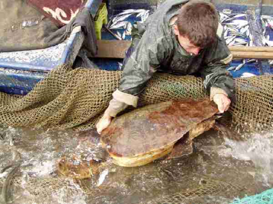 Thuajse të gjitha breshkat e studiuara janë kapur në rrjetat e peshkimit të tipologjisë stavnike (White et al., 2008), të cilat u përdorën fillimisht në Rusi (Figura 2). Ato ndërtohen duke ngulur dy shkopinj të gjatë thellë në tabanin ranor të ujërave të cekëta detare (zakonisht me thellësi 6-8 metra). Më pas, një sistem rrjetash instalohet nëpër shkopinj, duke krijuar një katërkëndësh të madh (zakonisht, me përmasa 90 x 10 metra), dhe me barrierën e rrjetës të shtrirë deri në brigje (në një prej rasteve, sistemi i rrjetave shtrihej deri në 2 kilometra larg brigjeve). Kur peshqit hasin në këtë barrierë, ata gjenden përballë tre zgjedhjeve: të ndjekin rrugën drejt plazhit në ujëra shumë më të cekëta, të kthehen andej nga erdhën (një hapësirë të cilën mund ta kenë përdorur për t’u ushqyer), ose të futen në rrjetë. Rrjetat stavnike nuk janë vdekjeprurëse për breshkat sepse ato u lejojnë atyre të pluskojnë, si dhe, ç’është më e rëndësishmja, të dalin në sipërfaqe për të marrë frymë (Figura 3).