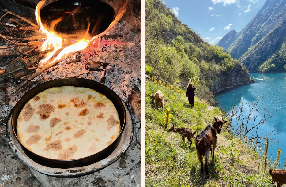 Marjana Koçeku, një malësore me flokë në ngjyrë të hapur, e cila studioi jashtë vendit përpara se të kthehej në shtëpi për të ndihmuar familjen e saj të drejtonte bujtinë, tregon se ushqimi sezonal shijohet nën dritën e qirinjve në sofra (tavolina të ulëta). Ajo që ofrohet është peshk i pjekur në flakë, supë me hithra, bukë misri me arra dhe djathë deleje të kripur, të shërbyer me perime turshi, kos, fruta foragjere dhe mjaltë të egër”, shkruhet në këtë artikull.