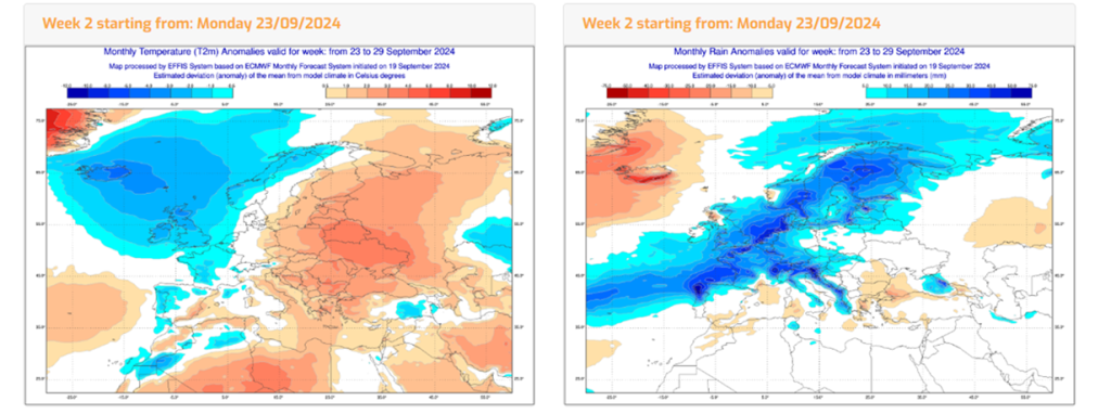 Në dy javët e para, reshje me intensitet më të lartë se mesatarja e viteve të fundit, e kanë karakterizuar rajonin e Evropës Qendrore dhe Lindore, rajonet lindore të Alpeve dhe Karpateve, si dhe Gadishullin Ballkanik. Anomalitë javore kanë qenë midis 10 mm dhe 90 mm, duke arritur lokalisht edhe vlera më të larta. Totali absolut i reshjeve javore ka qenë kryesisht 25-100 mm, duke arritur lokalisht në mbi 100-200 mm. Si pasojë, do të rritet rreziku i përmbytjeve dhe rrëshqitjeve të tokës. Në malet më të larta (të cilat arrijnë në mbi 1,500 – 2,000 m lartësi mbi nivelin e detit), shtimi i intensitetit të reshjeve mund të shoqërohet me reshje më të dendura dëbore.